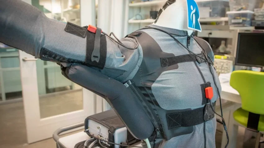 Cihaz, sensörlerle donatılmış bir yelekten ve kolun altına yerleştirilen, şişip inerek destek sağlayan balondan oluşuyor. Yeni yazılım, hareket ve basıncı izleyen sensörlerle kullanıcının yapmak istediği hareketi öğreniyor ve destek seviyesini kişiye göre ayarlıyor.